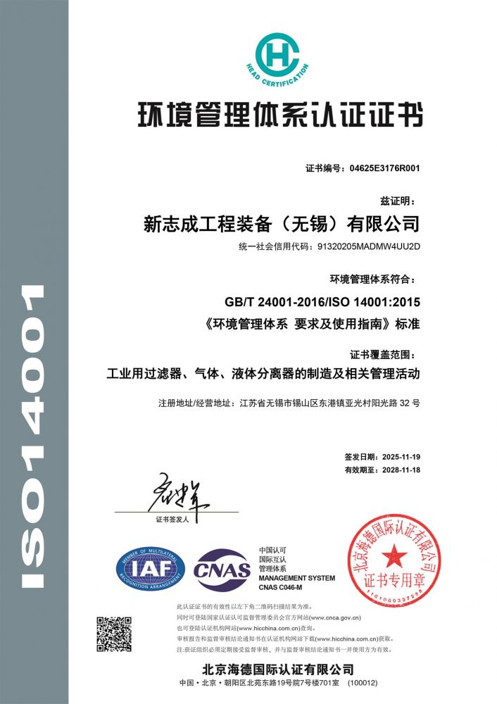 环境管理体系认证证书