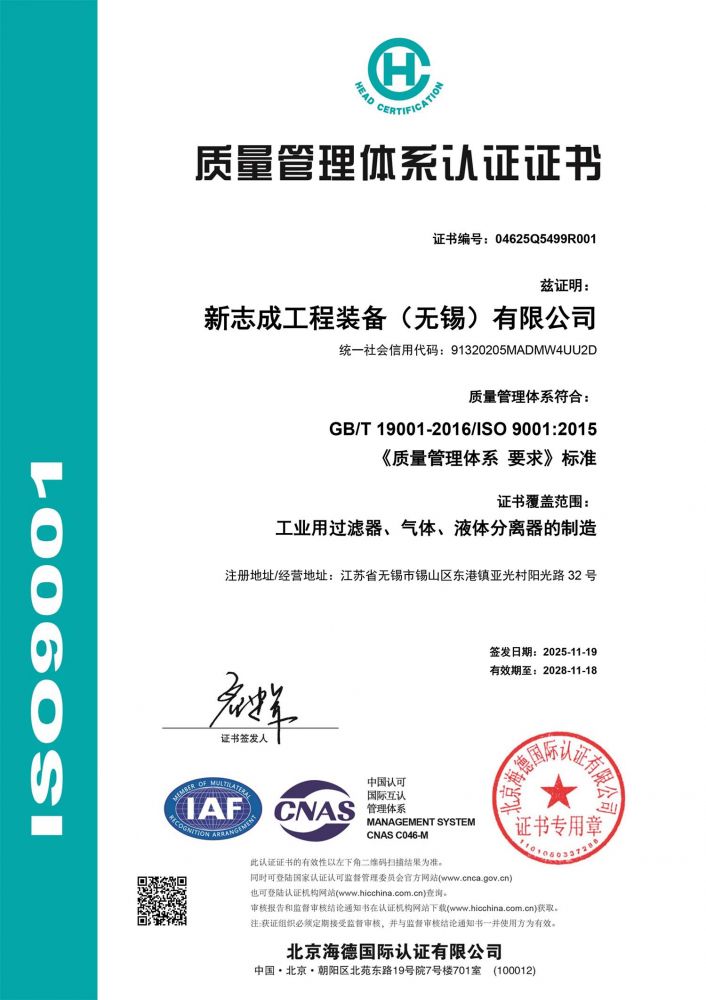 质量管理体系认证证书
