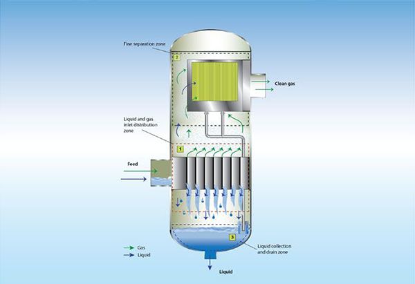 气液分离器的工作原理是基于气体和液体的密度差和流体的动力学效应。当气体与液体混合